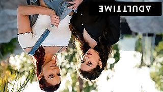 Dude enjoys fucking molten milf Rachael Cavalli and her red haired stepdaughter by the poolside