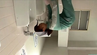 Mikuri Kawai gives a bj in a bathroom and gets a mouthful
