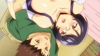 Humungous titted hentai brunette on top