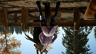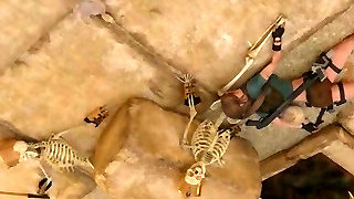 Lara Croft get plumbed by two dogs