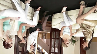 Classy gals in expensive clothes have a CFNM threesome