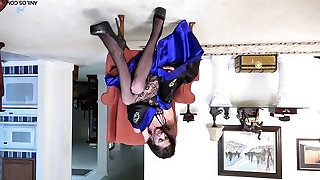 Busty Secretary Roxy Mendez wanks in stilettos and nylon suspenders
