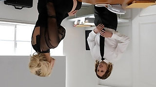 Towheaded secretary Karla Kush in lingerie loves to be screwed from behind