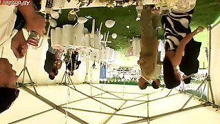 Sports at Home with Upskirt Views and Thongs, Underwear Revealing in Biz Dress Uniforms of Party Girls to showcase their Upskirt Ass and Up the Skirt Vulva Lips