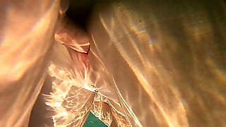 Spycam underwater, hidden pool web cam shows Arab girl playing with her big natural tits while masturbating with jet flow!