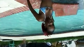 White honey gets her hairless pussy rammed by a black man outdoor in the pool