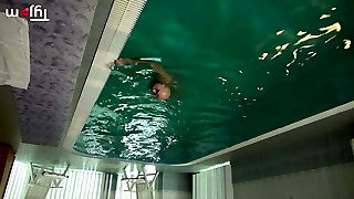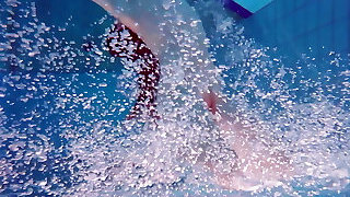 Naked Swimming MILF Gives Underwater Handjob Until He Cums