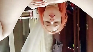 Redhead babe didnt notice how he went into her ready asshole, and then she sat on top and got a creampie assfuck