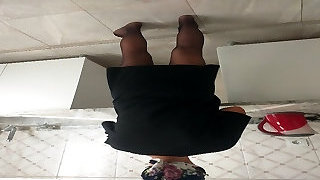 Sexy legs in nylons while my stepmom makes jammed in the kitchen