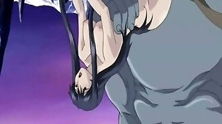 Bondage hentai with giant tits gets pushed vibrator in her wet