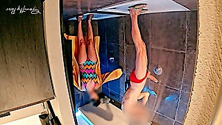 MIXED RESTROOM Venture: dickflash and exhibitionism for two sluts at swimming pool restroom