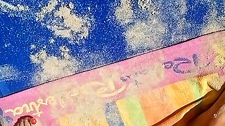 Asian Babe Putri Cinta Playing with Her Puss On Empty Beach