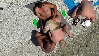 Rough hook-up while crowd watches on