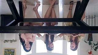 Always fighting damsels lick each others pussies on tutor's table