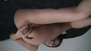 Geeky asian in glasses fingering raw pussy having fun