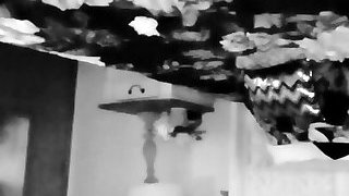 Skinny babe dances around the pillar while being completely naked