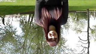 Naked in park. Wide Open my pussy and pissing