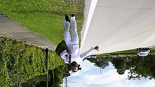 Naked Rowing in Public! People pass by, twitching in the sun & slow motion water on boner & jizz.