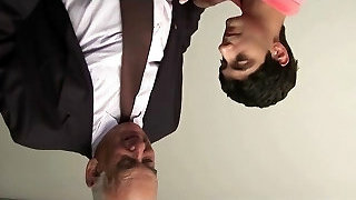 Young brunette licks grandpa all over and pulverizes him