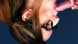 Shy Lush Brunette Teen In Glasses Happens To Succeed In Salami Sucking And Licking