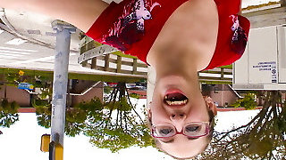 Blonde Nerdy Teen with Glasses Muddy Face Fuck