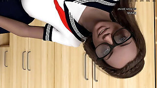 Pretty school girl gives dude in glasses a ride after super-cute deepthroat BJ