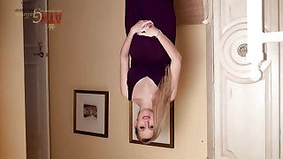 Knocked Up in Pantyhose fucking Dildo