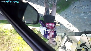 Cute PAWG publicly masturbates in the car