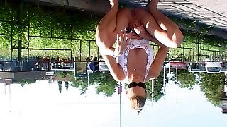 Huge-boobed amateur blonde banged in public outdoor