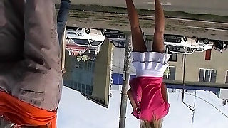 Sexy Redhead Flash Pussy With Upskirt Silkdress Tease